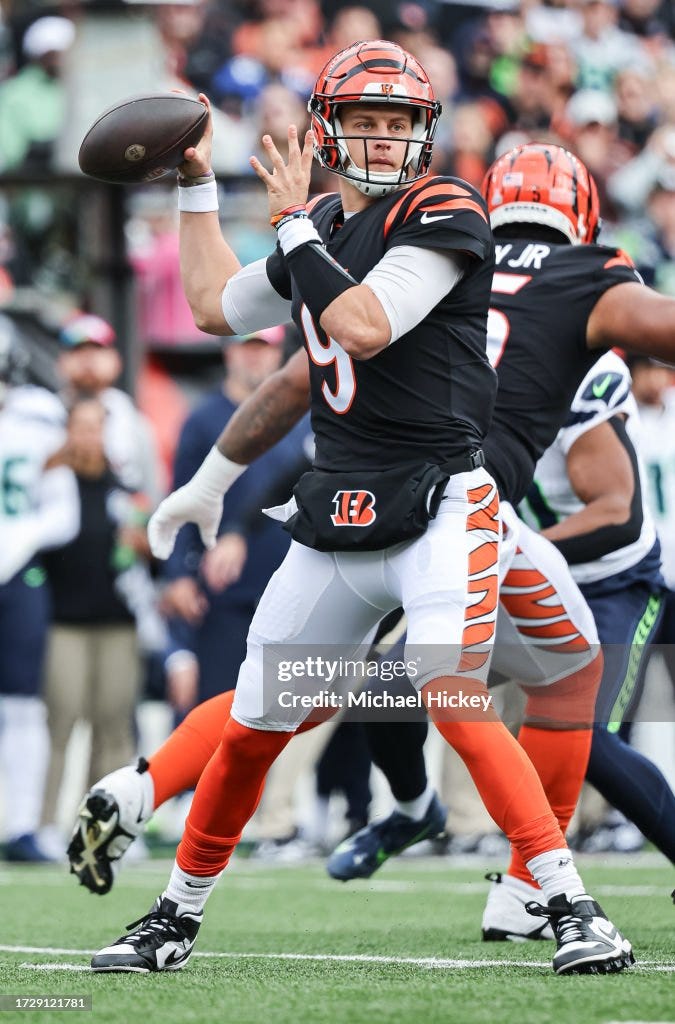 Shame on everyone in the league for letting the Bengals tread water while Joe Burrow nursed his calf injury. Fantasy owners were his primary concern. The Bengals quarterback is looking healthier by the week, and Cincinnati is now at .500 while heading into a bye; that could help the team out even more to get Burrow back to 100 percent and the passing game right on track.